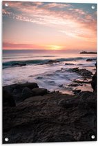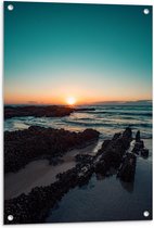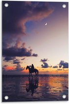 Tuinposter – Paard aan Zee met Zonsondergang - 60x90cm Foto op Tuinposter (wanddecoratie voor buiten en binnen)