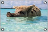 Tuinposter –Twee Meesjes bij Water– 40x30 Foto op Tuinposter (wanddecoratie voor buiten en binnen)