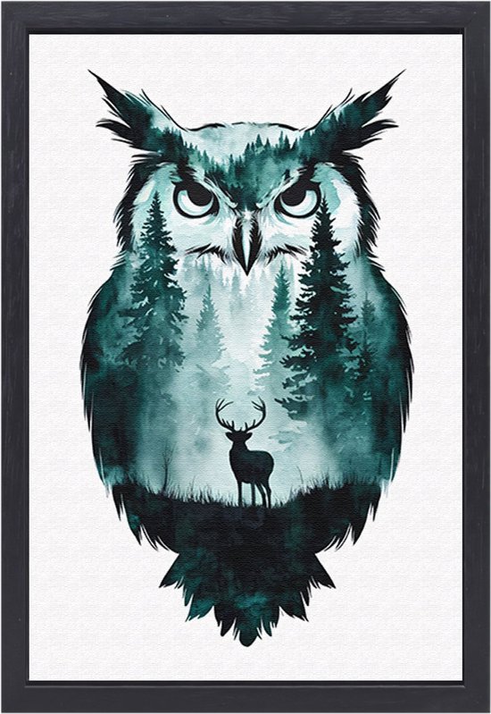Uil schilderij - Dier wanddecoratie - Canvas schilderijen Herten - Klassieke schilderijen - Canvas schilderij met baklijst - Kunstwerk canvas met baklijst 50x70 cm