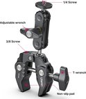De buisklem heeft een balhoofd met 1/4 inch schroef waarop een (spiegelreflex)camera, GoPro-mount, telefoonhouder of video/foto-accessoire bevestigd kan worden. Beweeg je camera of accessoire alle kanten op dankzij de twee balhoofden aan beide uiteindes van de Magic Arm.