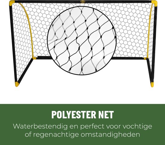 Het Umbro voetbaldoel heeft een afmeting van 180 x 91 x 120 centimeter. Hierdoor is het doel perfect voor het beoefenen van je keeper skills, doeltrappen andere voetbalskills die op het veld zeker van pas zullen komen. Er is geen perfecte leeftijd voor dit doel, zowel jong en oud kan hem gebruiken om te trainen. Het voetbaldoel is gemaakt van polypropyleen, een stevige soort kunststof dat zelfs de hardste doelpogingen aan kan.