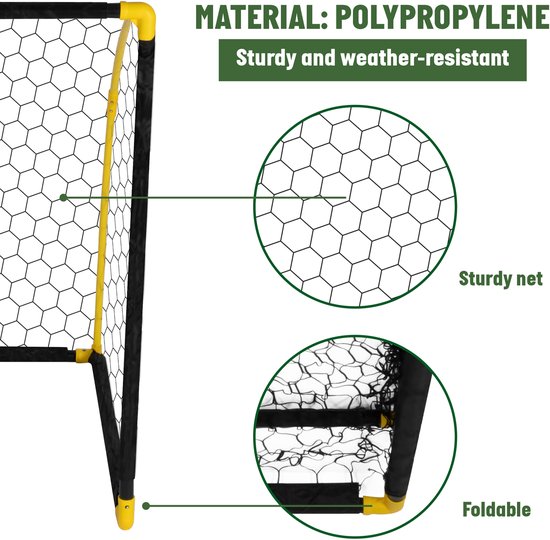 Super leuk voetbalgoaltje voor onze kindjes. Ligt in gewicht. Goede kwaliteit. Weerbestendig, je kunt hem gewoon buiten laten staan. Je kunt hem ook zo in- en uitklappen (Je hoeft dus niks in elkaar te zetten bij het eerste gebruik). Ook makkelijk mee te nemen op vakantie bijvoorbeeld. Formaat is perfect. Een klein nadeeltje: de haringen die erbij zitten blijven niet stevig in de grond zitten. Wij hebben nu dus andere gebruikt en daarmee is dit probleempje opgelost. Super snelle levering vanuit Maximundo (via bol.com).