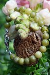 Getoonde foto's laten een voorbeeld zien van hoe het herinneringssieraad er uit komt te zien. Houdt er rekening mee dat uw sieraad niet exact hetzelfde kan worden omdat het crematie-as verschillende grijs of wit tinten in zich kan hebben én omdat de natuursteen kralen niet geheel gelijk aan het demo model kunnen zijn.