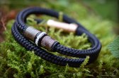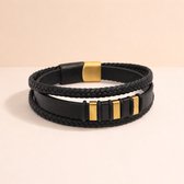 De armband heeft 2 gladde en 1 gevlochten PU lederen band. Bij PU leer bestaan de bestandsdelen uit PolyUrethaan wat inhoud dat PU leer wel aanvoelt als leer, maar dat er geen gebruik gemaakt wordt van materiaal dat afkomstig is van dieren en hierdoor minder grondstoffen (t.o.v. dierlijk leer) voor nodig zijn om te maken. Dat maakt PU leer duurzamer dan dierlijk leer, PU leer is vaak glad, wat een chique uitstraling geeft en is makkelijk schoon te maken.