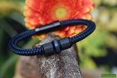 Urn-Crematie-as heren armband-glad én gevlochten leer-2.5 cm breed-Zwart-Heren armband met DUBBELE crematie-as verwerking (bedel én in rvs reservoir)-Design rvs kralen-Herinneringsarmband-Assieraad-Verlengbaar-Herdenkingsssieraad-Handgemaakt door Jet