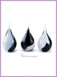 Omdat de urn handgemaakt is, houdt het ook in dat elke urn een ander verloop van de aangegeven kleuren zal hebben, maar de urn zal altijd in de aangegeven kleuren zwart en wit blijven.