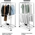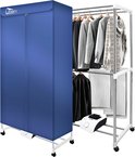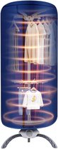 Een draagbare elektrische wasdroger met 2 hoogtes (1500 W), ideaal om kleren efficiënt en snel op te hangen en te drogen. Hij steriliseert ook en verwijdert geurtjes. Hij heeft een timer, wieltjes en een afneembare en wasbare hoes met rits.