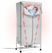Een draagbare elektrische wasdroger met 2 hoogtes (1500 W), ideaal om kleren efficiënt en snel op te hangen en te drogen. Hij steriliseert ook en verwijdert geurtjes. Hij heeft een timer, wieltjes en een afneembare en wasbare hoes met rits.
