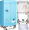 Uten Draagbare elektrische droger Gr886 - 2 lagen droog Design - Warmtepompdroger - 1500 W - Timer 0-180 Min - Elektrisch Droogrek met Verwarming - Wasdroger - Tot 15kg wasgoed - Als wasdroger, droogrek en Kledingkast- Hoogte 1.5 M - Blauw