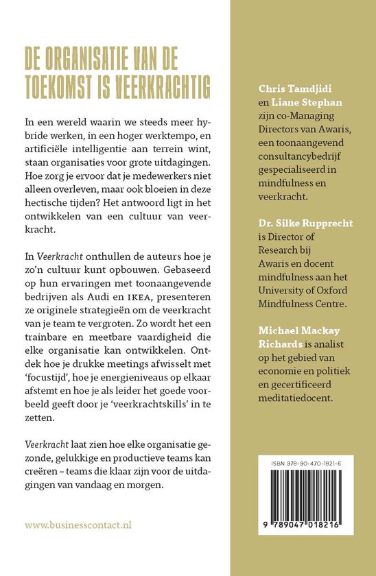 Maar hoe doe je dat? In dit boek presenteren de auteurs een raamwerk voor het opbouwen van een organisatiebrede cultuur van veerkracht, gebaseerd op hun ervaringen met toonaangevende organisaties als HSBC, Audi en IKEA. Zo laten ze zien hoe je een goede gewoonte kunt maken van het afwisselen van hectische meetings met focustijd, hoe je individuele energieniveaus onderling op een respectvolle manier afstemt zodat je goed herstelt van inspanning en hoe je als manager het voorbeeld geeft met het inzetten van je