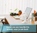 Door het slim ontworpen draaiende design met sterke klem, kun je deze ventilator op werkelijk iedere plek bevestigen, zodat je altijd nét de juiste hoek hebt voor heerlijke verkoeling op je lichaam.