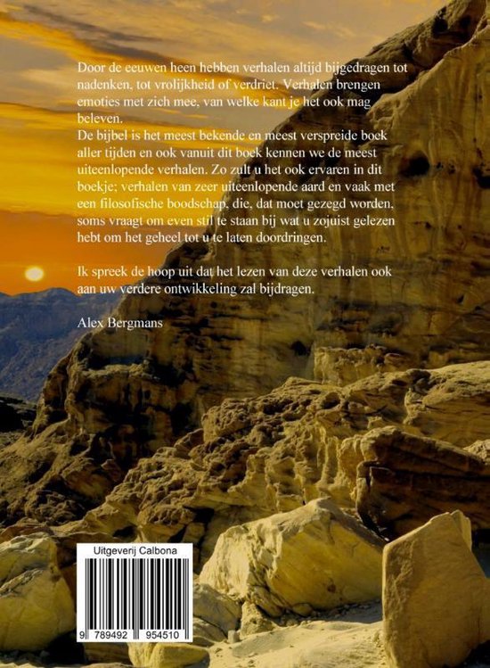 De bijbel is het meest bekende en meest verspreide boek aller tijden en ook vanuit dit boek kennen we de meest uiteenlopende verhalen. Zo zult u het ook ervaren in dit boek: verhalen van zeer uiteenlopende aard en vaak met een filosofische boodschap, die - dat moet gezegd worden - soms vraagt om even stil te staan bij wat u zojuist gelezen hebt om het geheel tot u te laten doordringen.