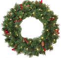 Famiflora verlichte kerstkrans "Everyday" - groen - Ø 61 cm - 50 warm witte ledlampjes - met rode bessen & dennenappels