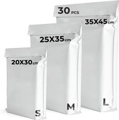 Supergoede zakken. Heel stevig, zijn ook niet doorzichtig. Toffe variant zou ook zijn dat je een pakket kan kopen met meerdere formaten in