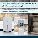 Vocht in huis kan zich uiten in condens op ramen, een klamme ruimte of een muffe geur. De Vibrix DryFlow6 helpt om overtollig vocht uit de lucht te verwijderen en draagt zo bij aan een drogere en comfortabelere leefomgeving.