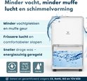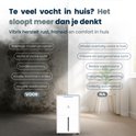 De luchtontvochtiger verwijdert tot 6 liter vocht per dag en werkt volledig automatisch, zonder app of wifi.