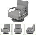 Met de verschillende instellingen voor verschillende standen combineert deze stoel comfort met bruikbaarheid. Hij is een geweldige keuze. De draaistoel kan makkelijk worden omgebouwd tot een chaise longue, ligstoel of slaapbank. Dit is ideaal als je weinig ruimte hebt, of als je voorbereid wil zijn op onverwachte slaapgasten.