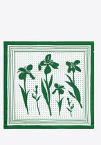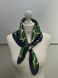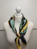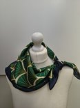 Vierkante dames neksjaal Eliane-fantasiemotief-waaierpatroon-groen-wit-zwart-rotan goud-70x70