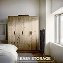 Makkelijk in-uitklapbaar, ook uitschuiven gaat prima door 1 persoon. Praktisch dat je de vleugels kan vastzetten met een clip bij het opklappen.