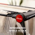 Vileda Infinity Flex is uitgerust met twee handige wieltjes waarop je het droogrek, zelfs volgeladen, gemakkelijk kunt verrijden. Na gebruik kan het droogrek gemakkelijk dichtgeklapt en veilig opgeborgen worden, dankzij de vleugelvergrendeling die voorkomt dat de vleugels per ongeluk open gaan.