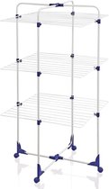 Moduleerbare, stalen droogtoren met 3 etages en een droogcapaciteit tot wel 3 machines wasgoed.Zeer moduleerbaar en voor meervoudig gebruik. Dankzij zijn onafhankelijke plateaus, kan hij volledig open gebruikt worden – om lange stukken wasgoed op te hangen of delicate stukken plat te laten drogen – ofwel half dichtgeplooid tegen een muur of radiator voor kleinere hoeveelheden wasgoed of om plaats te winnen. Extra droogcapaciteit dankzij zijn houder voor kleine stukken (sokken, ondergoed, ...) en 2 haken voor kleerhangers.De zwenkwieltjes zorgen ervoor dat u de droogtoren gemakkelijk kunt verplaatsen. Wanneer u hem niet gebruikt, kunt u hem volledig dichtplooien en plat opbergen.Afmetingen open (LxDxH): 71x71x132 cmAfmetingen gesloten (LxDxH): 71x5x132 cmEen totale droogcapaciteit van 30 m, zonder veel vloeroppervlak in te nemen. Kan ook in de douche gebruikt worden.Moduleerbaar dankzij zijn speciale scharnier: u kunt hem voor de helft dichtklappen of hem volledig open gebruiken.6 onafhankelijke plateaus geschikt om lange kledingstukken op te hangen of om delicate stukken plat te drogen.Uitgerust met twee haken voor kleerhangers en zwenkwieltjes om hem gemakkelijk te kunnen verplaatsen.3 jaar garantie.