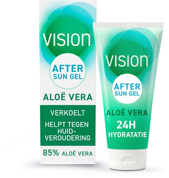Ook ná het zonnen kun je rekenen op Vision. na blootstelling van de huid aan de zon kan de huid droog en trekkerig aanvoelen, daarom heeft de huid extra verzorging en verkoeling nodig. Vision After Sun Aloë Vera Gel zorgt voor een onmiddellijk verkoelend effect op de huid en helpt het herstellende vermogen van de huid te ondersteunen. De formule bevat een actief ingrediënt om de huid te beschermen tegen huidveroudering. De formule bevat bovendien een hydraterend complex dat zorgt voor een mooie gehydrateerde huid die zijdezacht en soepel aanvoelt. Voor het behoud van een langdurige mooie bruine teint. Vision After Sun Aloë Vera is dermatologisch getest, plakt niet en voelt niet vet aan. Bevat geen parfum.