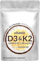 Vitamine D3 10.000 IU met K2 200 Mcg (MK7) – Hoog gedoseerd – 180 Capsules – Botten, Immuun & Spieren – Vegan – Supplement voor Dagelijkse Weerstand