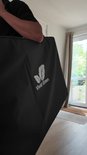 Beetje slap ding, Aluminium.frame wat scharniert in houten blokjes? Waarom dat ook niet van aluminium? Armsteunen zitten met hele dunne pinnetjes ingeschoven, dit verbuigt al direct. Hoofdsteun deels van dun plastic, . Draagtas heet wel een draagband, maar omdat die vrij laag vastzit, kiept de tafel/tas meteen om.. Al met al niet een heel best ding, had voor dit geld echt wel een steviger model verwacht. Ik durf er geen 230kg op de zetten.. bij een persoon van 120kg buigt deze al door. Elastieken waarmee je de accessoires aan de binnenzijde inklemt zijn al kapot. Dit is gewoon elastiek wat in een broek genaait zit, alle rek is er al uit Maar goed, we zien wel hoelang het meegaat Maar tot nu toe ben ik niet enthousiast.