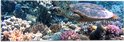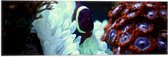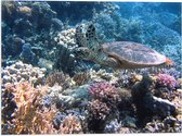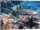 Vlag - Blije Schildpad Zwemmend tussen Verschillende Kleuren Koraal - 60x20 cm Foto op Polyester Vlag