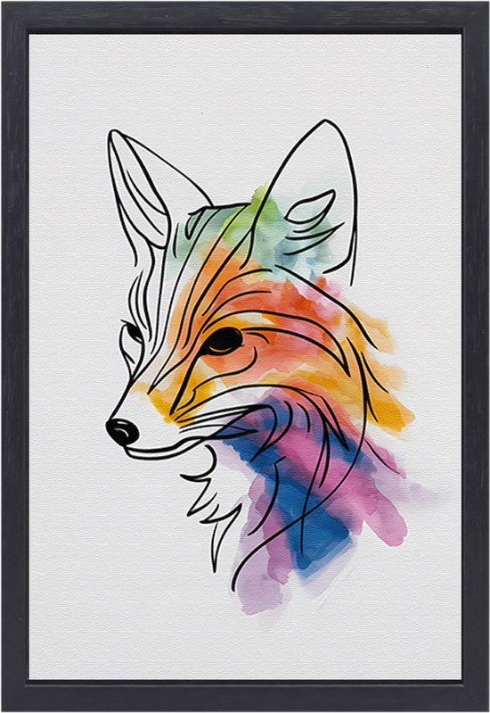 Vos portret - Dieren portret - Schilderij op canvas Lijnen - Muurdecoratie modern - Schilderijen canvas met baklijst - Schilderijen canvas met baklijst 50x70 cm