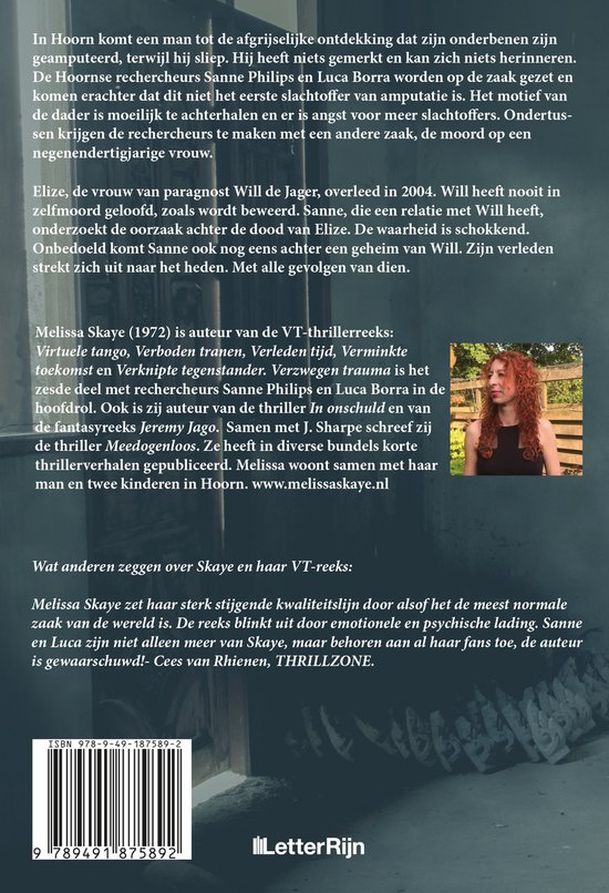 Melissa Skaye geeft in dit 6e deel van de VT-reeks een diepe inkijk in de levens van Sanne en Will. De levens van alle betrokkenen worden verder uitgediept. Er wordt op een mooie manier terug verwezen naar eerdere delen van de reeks waardoor ik snel weer op de hoogte was en door kon lezen. Hiermee is het boek ook zeker toegankelijk voor lezers die nog niet bekend zijn met eerdere VT-delen. Het verhaal wordt heel beeldend omschreven waardoor ik er snel middenin zat. Korte hoofdstukken, snelle acties en een hele goede verhaallijn. Even werd ik afgeleid door het dagboek van Will waardoor de aandacht afliep van de zaken waar Sanne mee bezig was maar uiteindelijk komt alles heel mooi bij elkaar en klopt het weer. Meesterlijk ontpopt zich een verhaal tussen de moord en amputaties door. Het is een rollercoaster van emoties. Heel knap hoe Melissa groeit in deze serie en vooral ook nu weer triggert ze me om volgende delen te willen lezen. Ik wil gewoon meer weten, lezen en ontdekken.