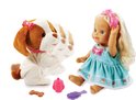 Interactieve pop en hond is wel fijn enkel jammer dat het haar een beetje snel lelijk valt maar met een rekje of speltje is het makkelijk opgelost pop zit niet zelfstandig