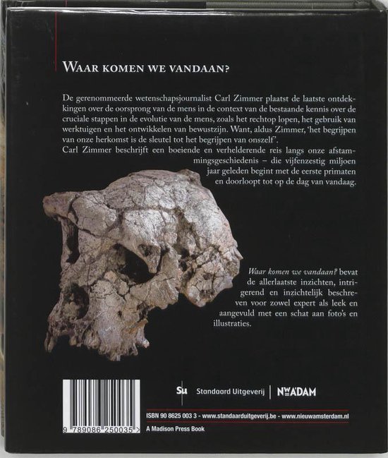 niet de enige informatiebron over onze oorsprong. Waar we vandaan komen, is ook vereeuwigd in ons eigen DNA. Wat er miljoenen jaren geleden precies is gebeurd, wordt nu almaar duidelijker dankzij genetisch onderzoek. Zimmer plaatst die bevindingen in de bestaande kennis van de cruciale stappen in de evolutie van de mens, zoals het rechtop lopen, het gebruik van gereedschap en de ontwikkeling van het bewustzijn. Hij onderzoekt ook hoe de mensheid zal evolueren in de toekomst.