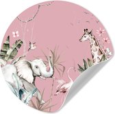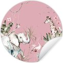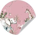 Behangcirkel - Muurstickers kinderkamer - Jungle - Wilde dieren - Roze - Meisje - Ronde wanddecoratie - Sticker behang - Ronde muursticker - 50x50 cm - Muursticker meisjes slaapkamer - Wandsticker - Plak stickers