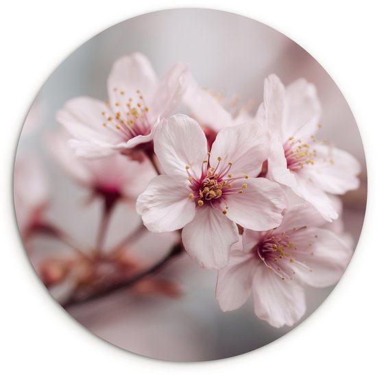 Muurcirkel binnen - Bloesems - Meeldraden - Geel - Wazig - Wanddecoratie rond