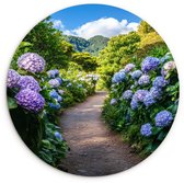 WallCircle® Wandcirkel 60x60 cm - Muurcirkel Hortensia- Park - Pad - Muurdecoratie woonkamer - Wanddecoratie slaapkamer - Kamer decoratie accessoires - Ronde schilderijen