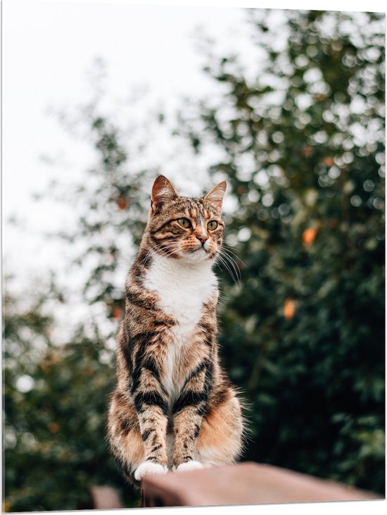 WallClassics - Acrylglas - Gevlekte Kat Wegkijkend - 75x100 cm Foto op Acrylglas (Wanddecoratie op Acrylaat)