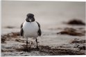 WallClassics - Acrylglas - Wit met Zwarte Vogel - 75x50 cm Foto op Acrylglas (Met Ophangsysteem)