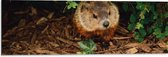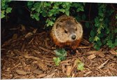 WallClassics - Dibond - Bosmarmot aan de Bosrand - 80x80 cm Foto op Aluminium (Wanddecoratie van metaal)