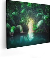 WallClassics - Hout - Begroeiing in Regenwoud - 80x80 cm - 12 mm dik - Foto op Hout (Met Ophangsysteem)