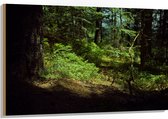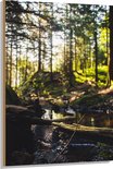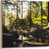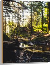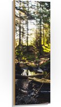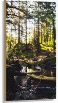 WallClassics - Hout - Takken vallend over Riviertje in het Bos - 80x120 cm - 12 mm dik - Foto op Hout (Met Ophangsysteem)