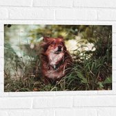 WallClassics - Muursticker - Bruin met Witte Hond in het Gras - 60x40 cm Foto op Muursticker
