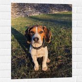 WallClassics - Muursticker - Wit met Bruine Beagle Hond in het Gras - 60x80 cm Foto op Muursticker