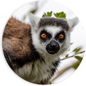 WallClassics - PVC Schuimplaat Muurcirkel - Close-Up van een Ringstaart Maki - 90x90 cm Foto op Muurcirkel (met ophangsysteem)