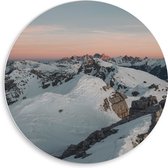 WallClassics - PVC Schuimplaat Muurcirkel - Sneeuwbergen - 50x50 cm Foto op Muurcirkel (met ophangsysteem)