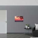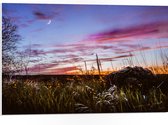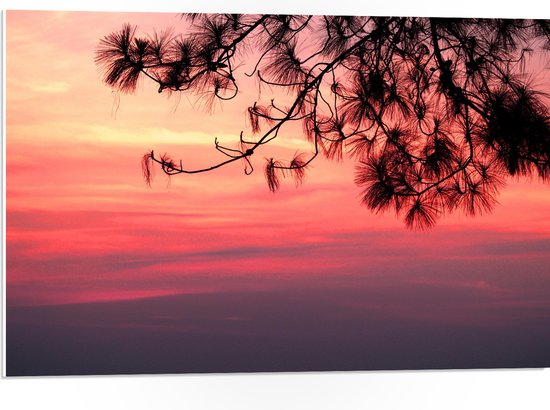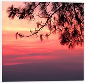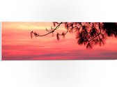 WallClassics - PVC Schuimplaat- Silhouet van Takken tegen Roze Lucht - 75x50 cm Foto op PVC Schuimplaat