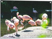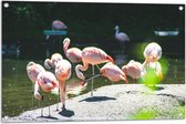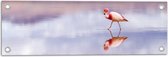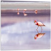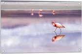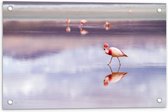 WallClassics - Tuinposter – Flamingo in het Water - 90x60 cm Foto op Tuinposter (wanddecoratie voor buiten en binnen)