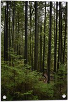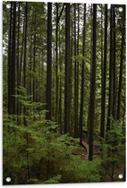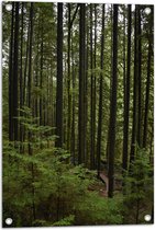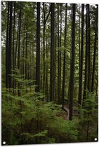 WallClassics - Tuinposter – Smalle Boomstammen met Begroeiing - 60x90 cm Foto op Tuinposter (wanddecoratie voor buiten en binnen)