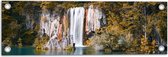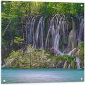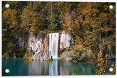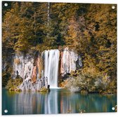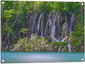 WallClassics - Tuinposter – Waterval vanuit het Bos in een Meer - 80x60 cm Foto op Tuinposter (wanddecoratie voor buiten en binnen)