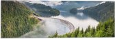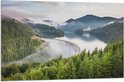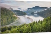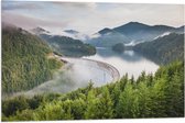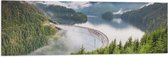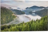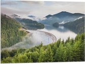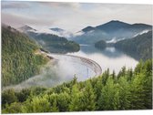 WallClassics - Vlag - Dam tussen de Bergen en Bossen - 105x70 cm Foto op Polyester Vlag